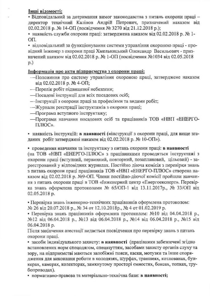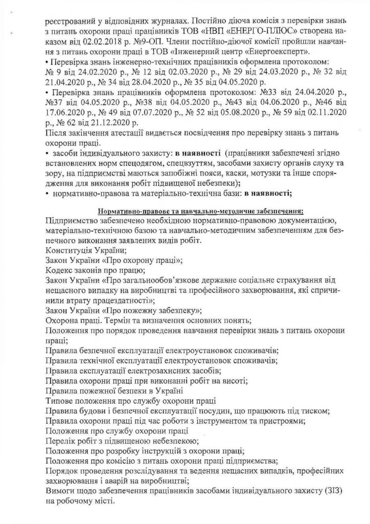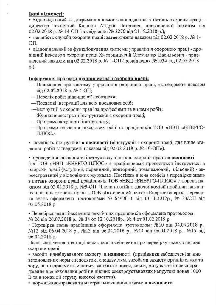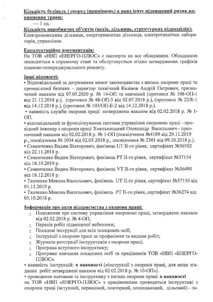 Співробітники ТОВ «НВП «ЕНЕРГО-ПЛЮС» мають кваліфікацію, підтверджену відповідними документами: